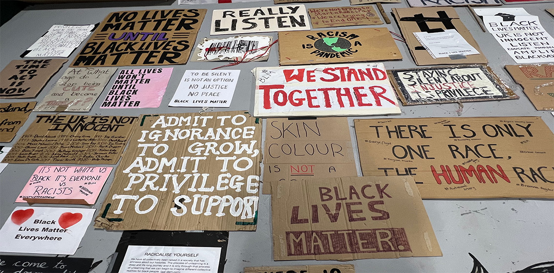 One room presents posters that outline, for instance, the history of Civil Rights movement and the contribution of black people within the NHS and in other spheres of British society and culture. These examples of activism are then brought up to date and made locally relevant in an adjoining room which offers a powerful reminder of the anger and solidarity that arose in the aftermath of the murder of George Floyd by police officers. (Whilst that case occurred in the USA, black people are also dying in police custody in the UK.) Weston Black Lives Matter and their allies organised local demonstrations of peaceful  protest and many individuals and organisations responded positively, in Weston, the UK and across the world, by showing their solidarity.
